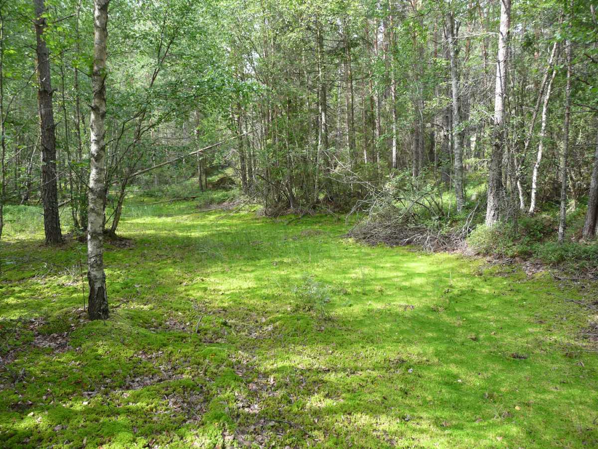 En lite längre utflykt är att ta Svealandsbanan och stiga av vid Läggesta, mellan Mariefred och Åkers Styckebruk. Söder om Läggesta ligger Marviken-sjöarna, som är ett trevligt område att vandra i. Här en glänta i en tät skog. |