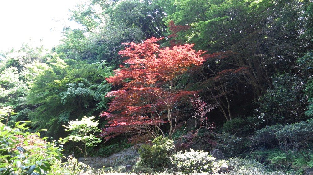 | Förutom alla tempel och helgedomar, så finns också några fina vandringsvägar genom skogarna mellan de olika templen. Denna scen är dock inte från någon sådan stig, utan från parken kring templet Tokei-ji. | ||