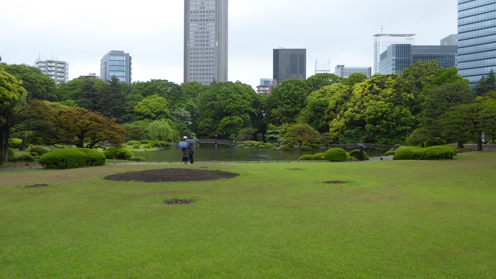 | Shinjuku Goyen är en stor park, inte långt från Shinjuku-stationen. På min resa 2009, så bodde jag i Shinjuku, men det blev inte av att jag besökte parken då. Denna gång gjorde jag ett besök, även om det inte blev så långt. Det regnade en hel del, så att utforska hela parken var det inte läge för. Dessutom behövde jag åka tillbaka till hotellet på eftermiddagen för att förbereda resan till flygplatsen och flyget hem. | ||