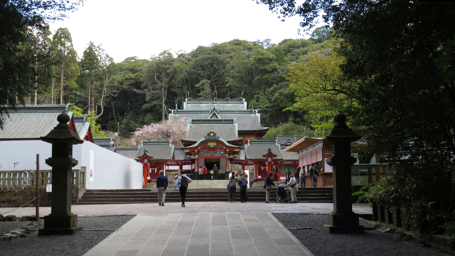 | I nationalparken finns detta viktiga shinto-tempel, som är tillägnat Ninigi no Mikoto, sonson till solgudinnan Amaterasu. Han sägs ha nedstigit från himlen i de här trakterna för att styra över jorden, och han är enligt tron anfader till Japans kejsare. | ||