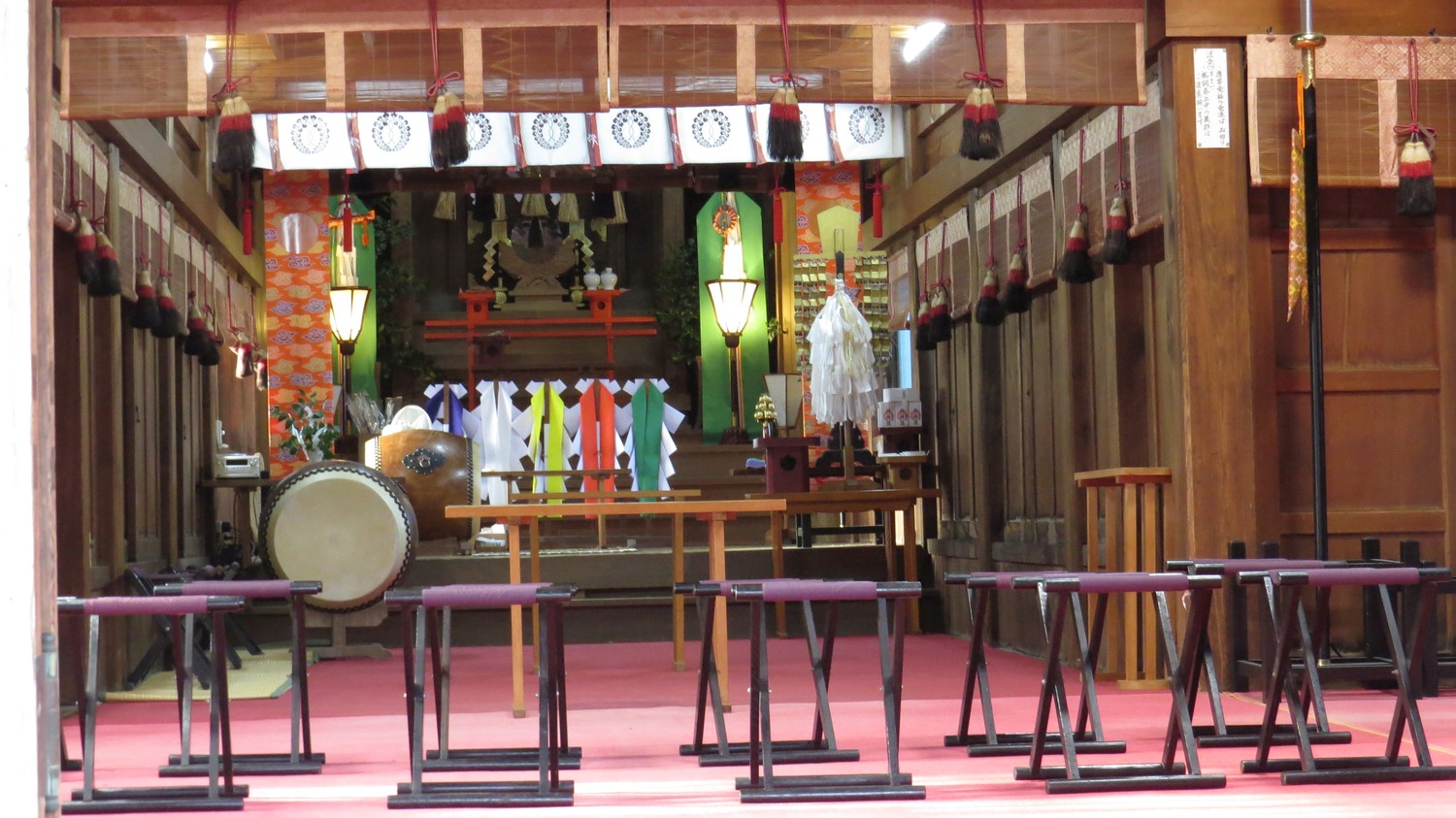 | Shintoism är den nationella religionen i Japan (även om många också räknar sig som buddister), och detta är ganska typiskt altare i ett lokalt shintotempel. (I Nakamura, faktiskt.) | ||