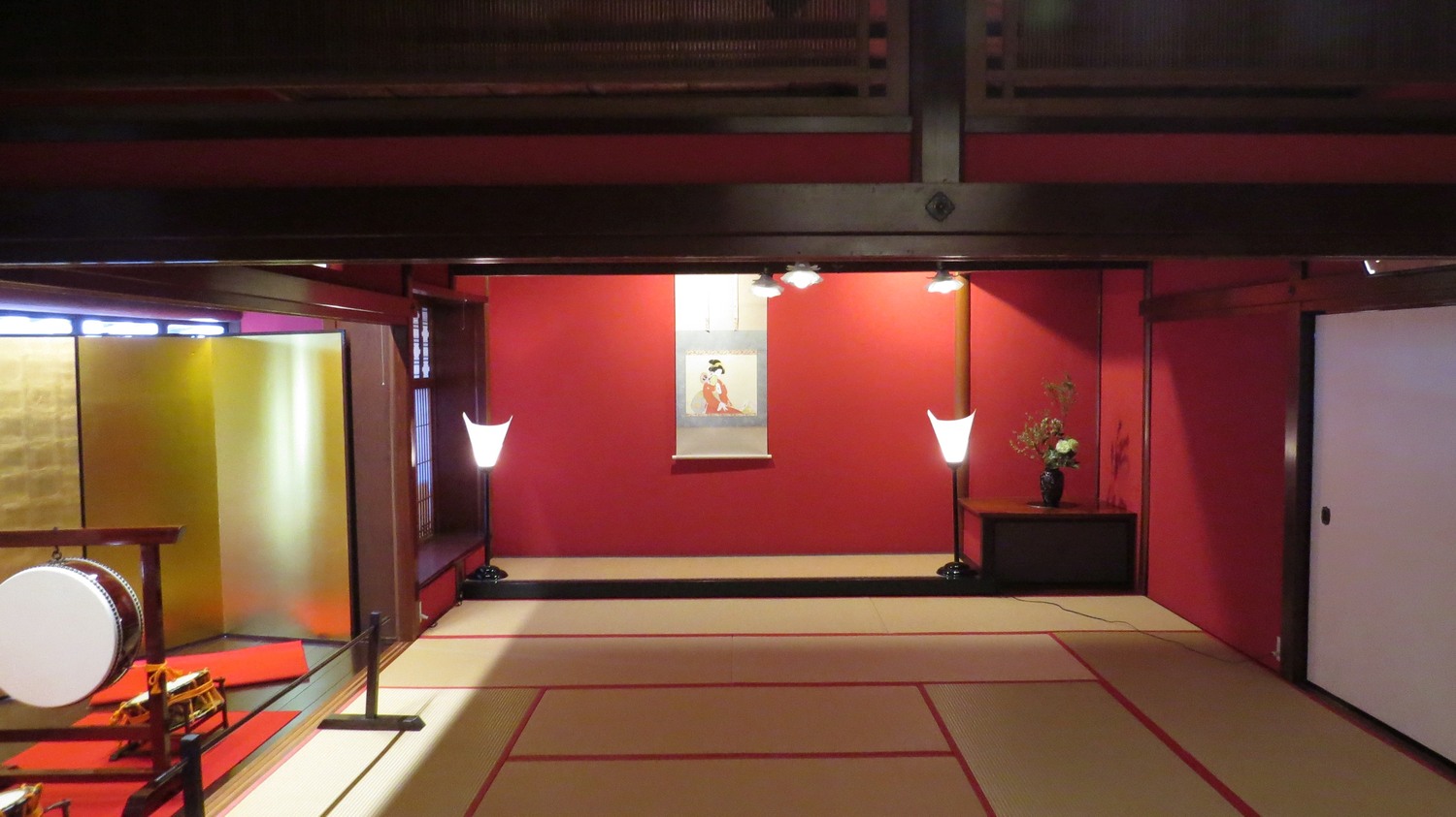 | Bortsett från Kyoto, så är Kanazawa den enda stad i Japan där man fortfarande har en geisha-utbildning. Higashu Chaya är ett område där det här äger rum, och dessa kvarter är fyllda med små äldre hus. Det finns ett antal tehus som också har en museumdel, och denna bild är från ett som heter Ochaya Shima. | ||