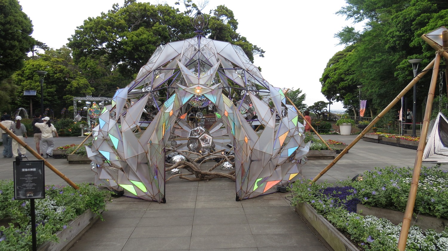 | Efter en kort resa från Kamakura med lokaltåget så kommer man till Enoshima, en ö precis utanför stan med samma namn. Det finns flera saker att se på ön, bland annat denna botaniska trädgård. När jag var där hade den garnerades med diverse spejsade konstinstallationer. | ||