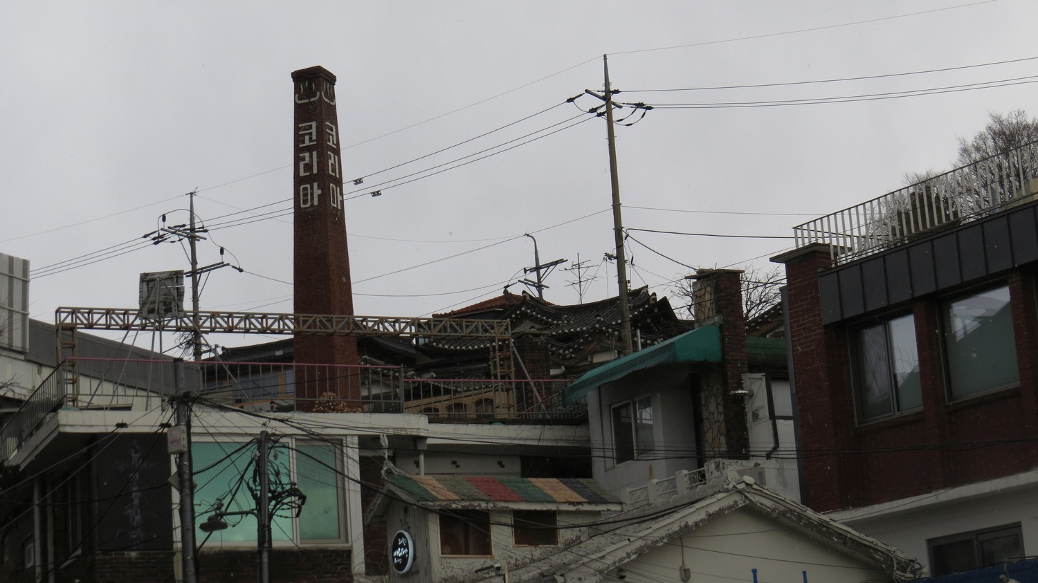 | Bukchon är ett antal kvarter uppe på en kulle öster om Gyeongbukgung-området. Det domineras av hanok-hus, dvs traditionella koreanska trähus som inte är så vanliga numera. Detta är från en gata nedanför området, och jag tog bilden främst för skorstenens skull. | ||