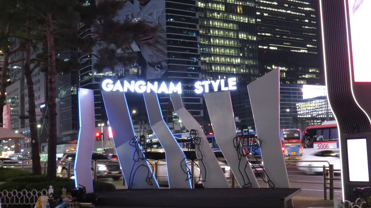 Gangnams centrum är Gangnams tunnelbanestation, eller korsningen rakt ovanför den, och här de satt upp en hyllning till Gangnam Style.