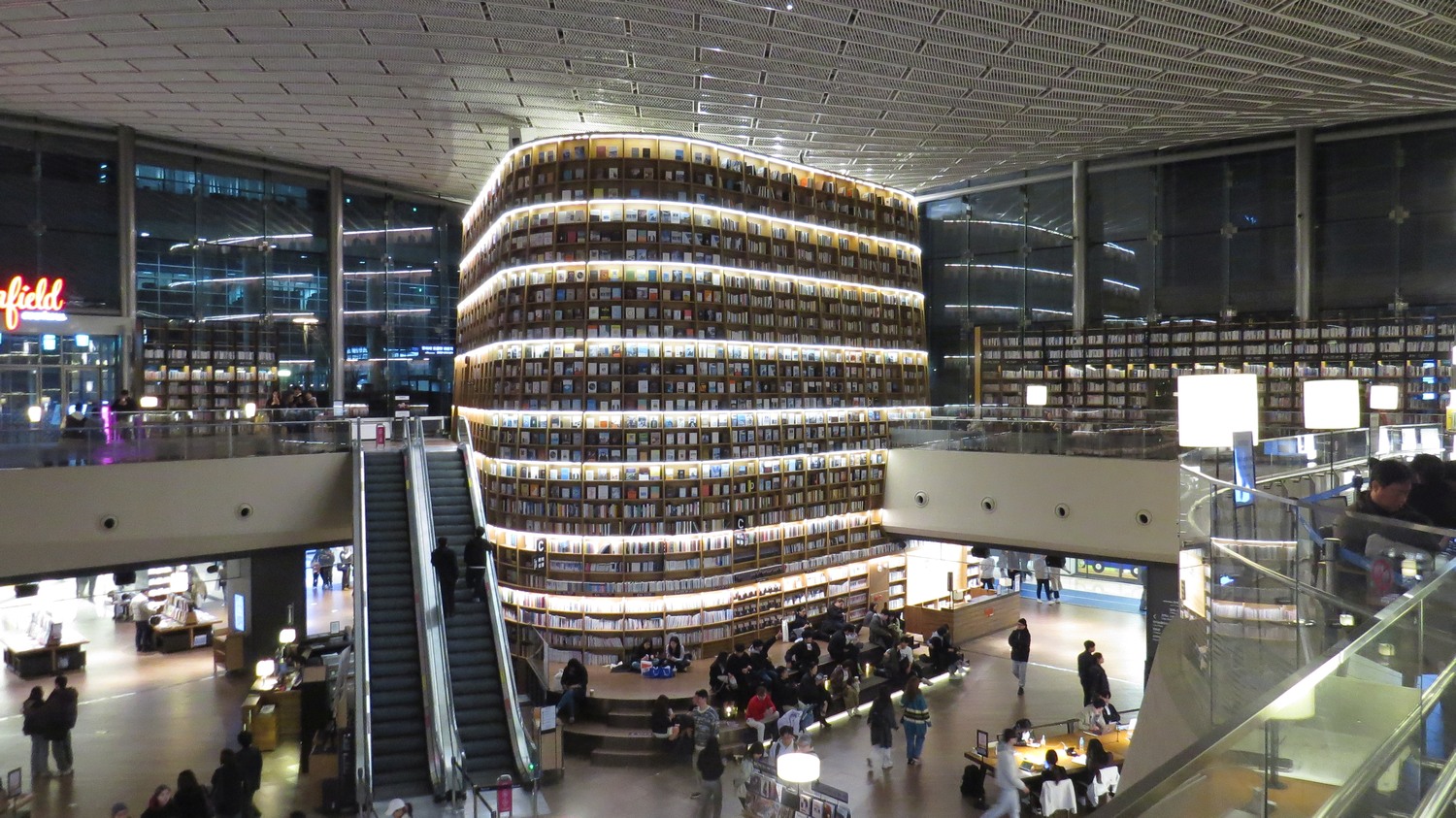 Detta är från ett stort shoppingcentrum som heter Coex. Det ligger i östra utkanten av Gangnam. Jag gick hit den första kvällen när jag behövde hålla mig vaken några timmar efter flygresan från Seattle. Detta "bibliotek" är rätt spektakulärt. |