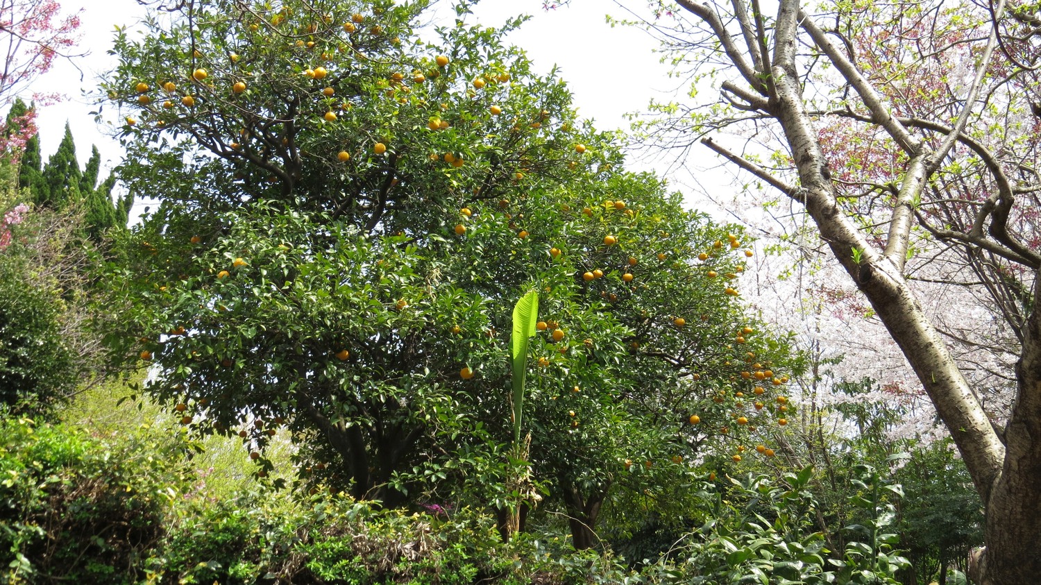| Vilken kontrast! I Seoul är träden mestadels bara eller har bara börja slå ut. I Seogwipo, mindre än 50 mil fågelvägen därifrån finns det träd med apelsiner. | ||