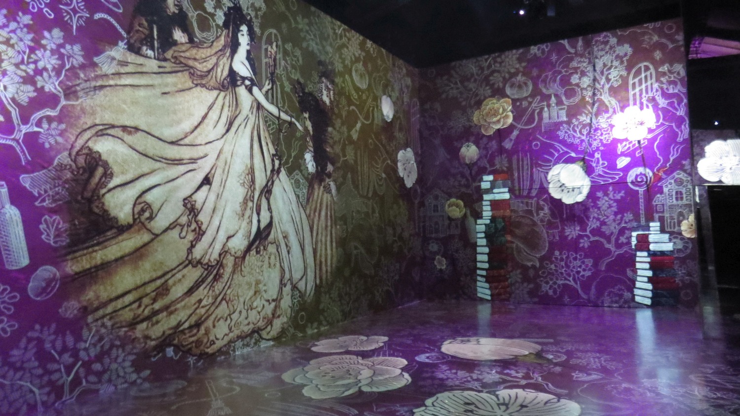 Multimedia-föreställningarna i Grimm Forest bygger på Bröderna Grimms sagor. Detta är en scen från askungen.