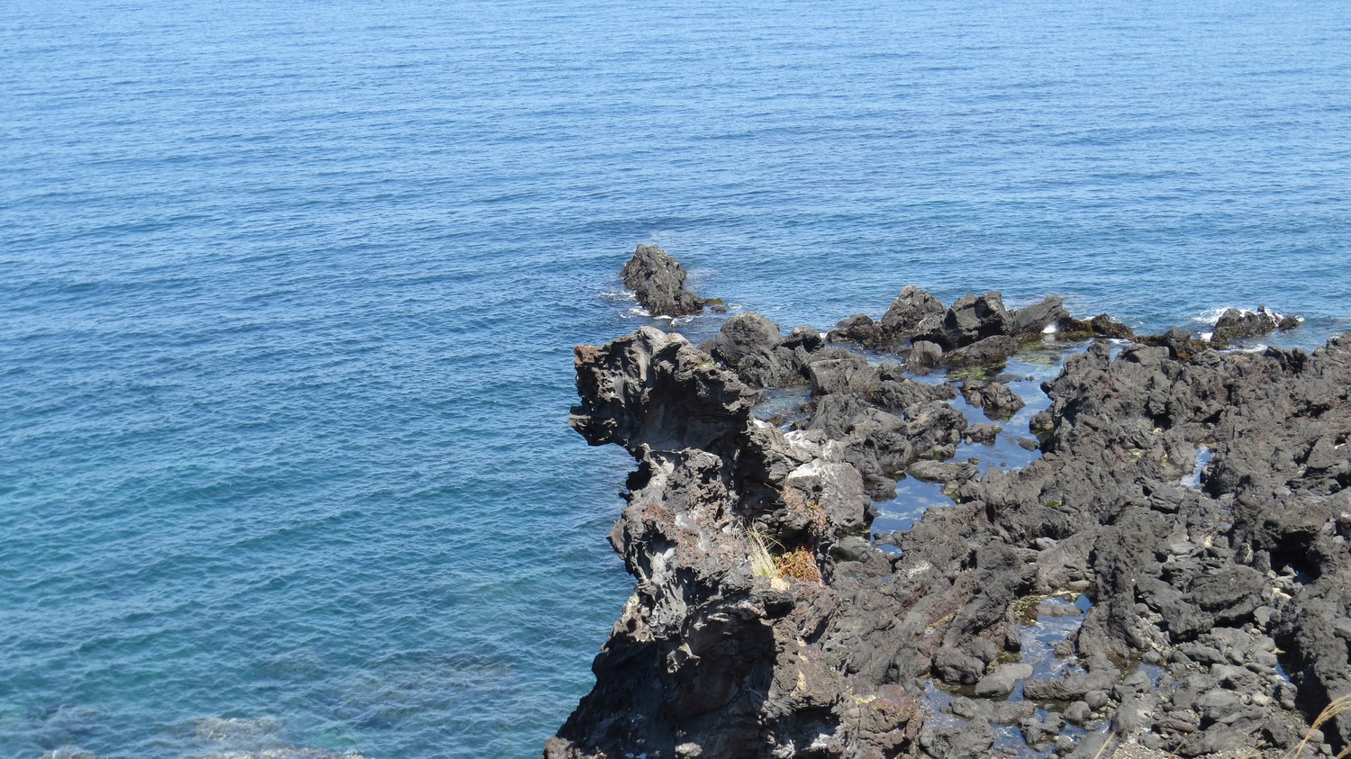 | Förutom klippformationerna kan man studera flygtrafiken till Jeju, eftersom flygplatsen är strax intill. Det kom in plan var femte minut om inte oftare än så. | ||
