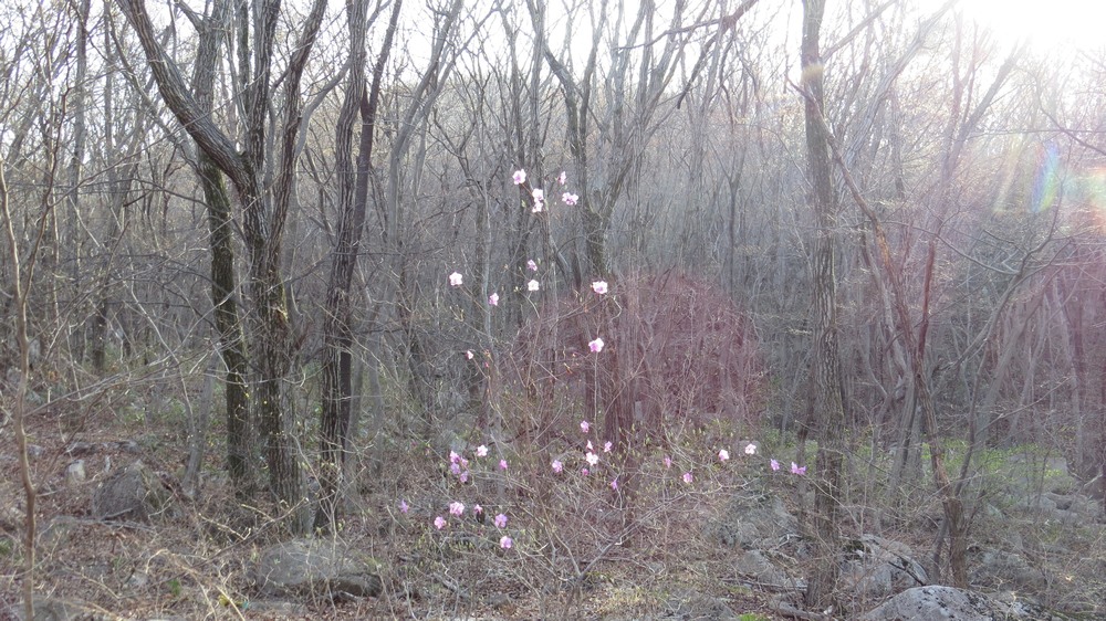 Det fanns några gångstigar upp för berget genom skogen från Beomeosa. Jag följde en av din med hopp om att komma ovanför skogen för att få fina utsiktsvyer, men skogen gav aldrig vika. Det var en tydlig skillnad mot situationen på Jeju: Lövsprickningen har bara precis börjat. |