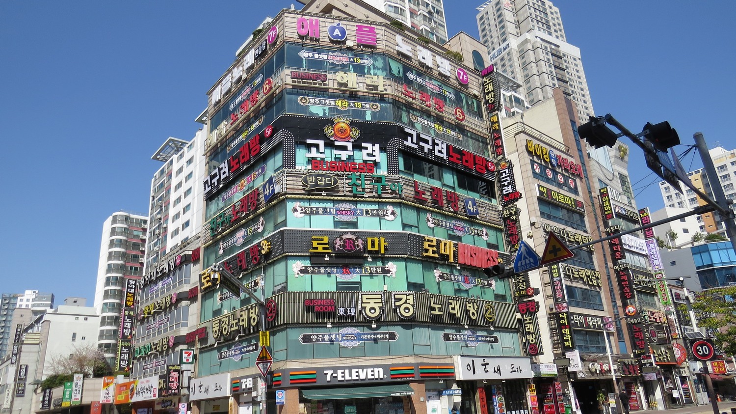 | Detta är en annan del av Busan. När jag kom upp från tunnelbanan på väg till linbana uppför berget såg jag denna byggnad. (Tyvärr var linbanan stängd denna dag.) | ||