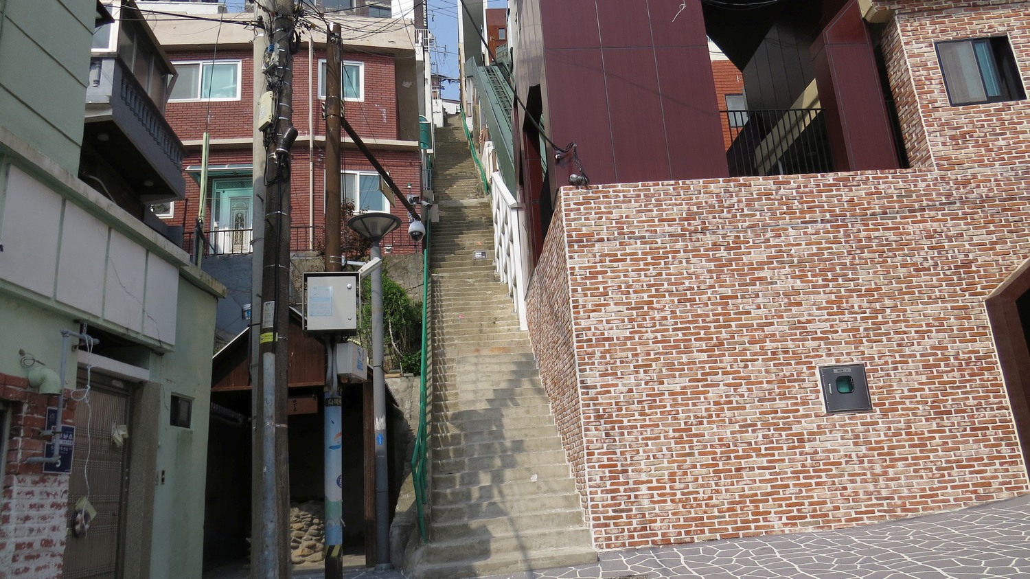 En brutal trappa med, får man anta, 168 steg upp för backen. Turligt nog så finns det en enspårsbana bredvid.