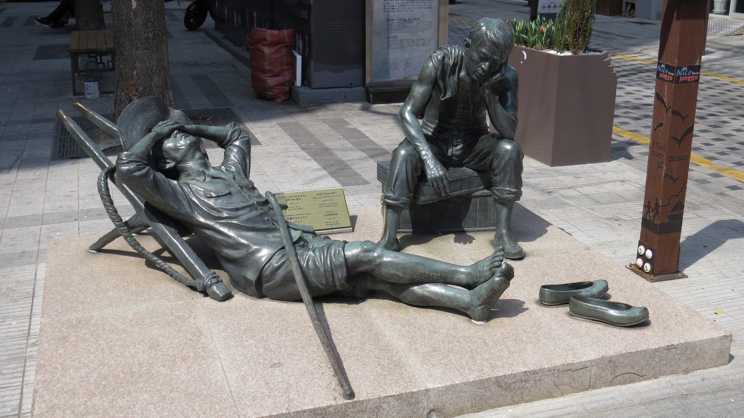 Mer gatukonst. Detta är verkligen en favorit. Konstnären har verkligen lyckats fånga hur trötta arbetarna är och att de verkligen förtjänar sin rast.
