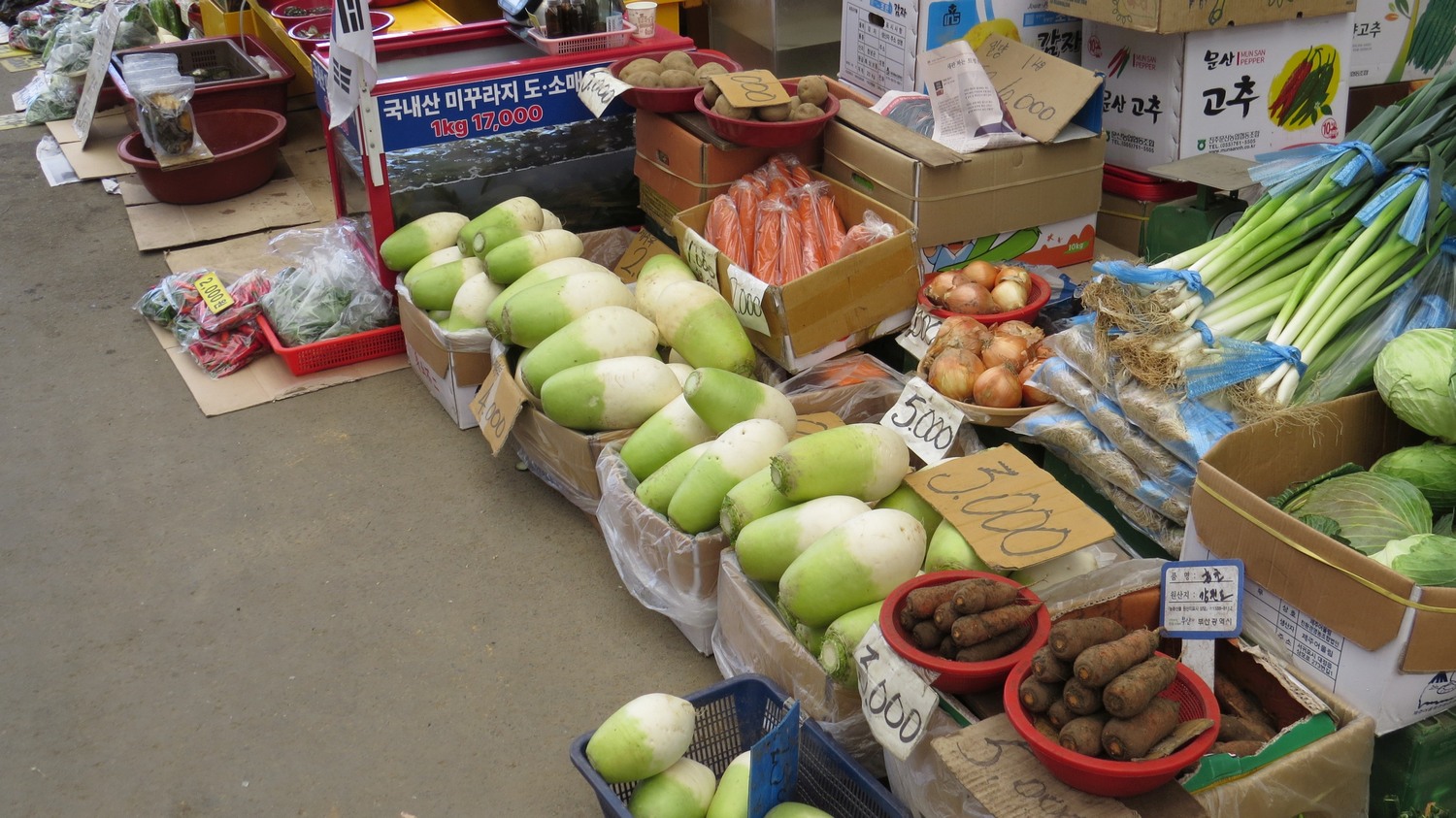 Efter ha gått omkring mer än en halvtimme på fiskmarknaden, den var nästan en lättnad att se grönsaker till salu.