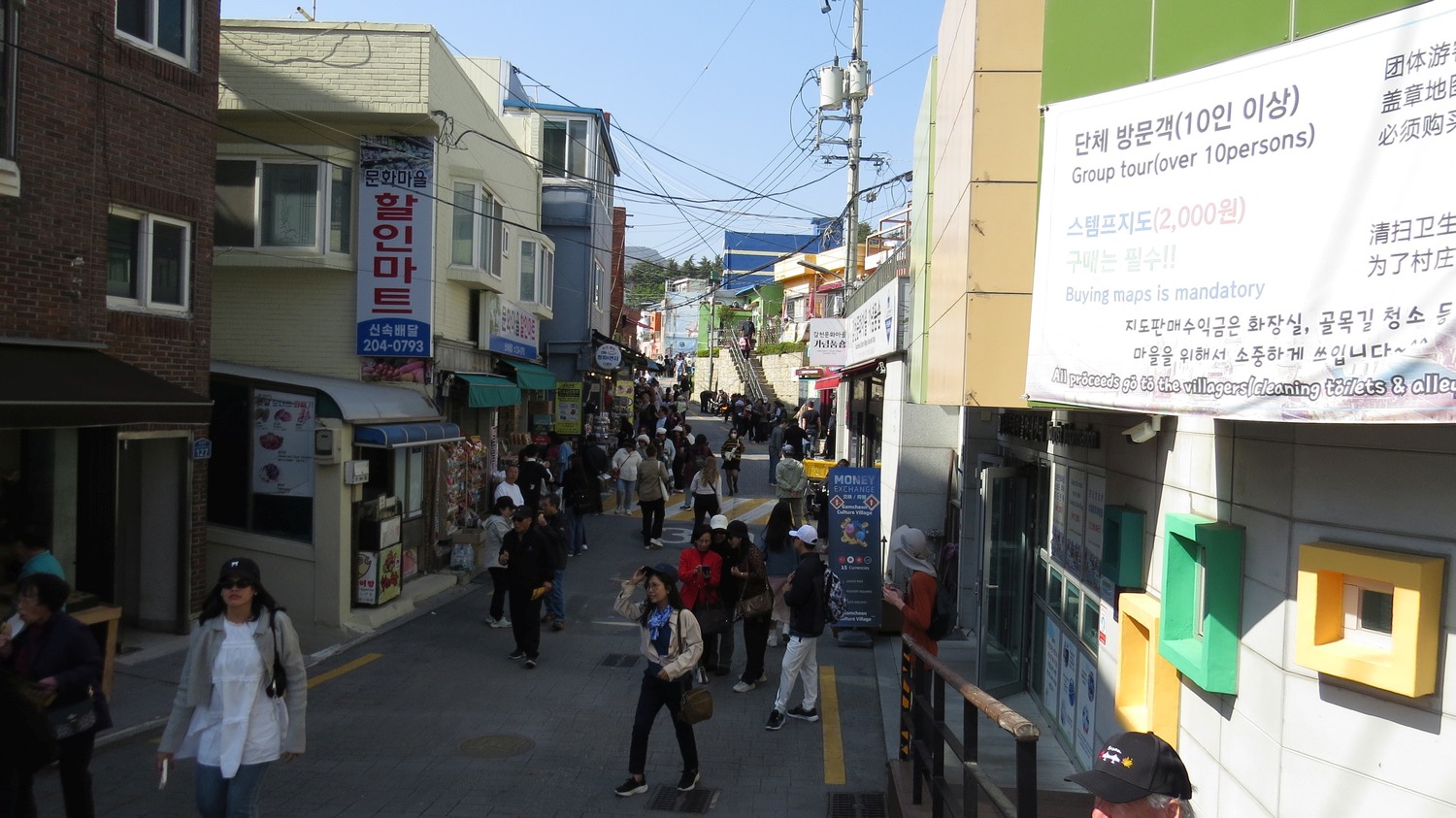 | Infarten till Gamcheon. Som synes är det bysst med folk här. Jag får erkänna att jag inte köpte någon karta. (Jag tror inte jag noterade att det var obligatoriskt med karta förrän jag tittade på mina bilder senare.) | ||