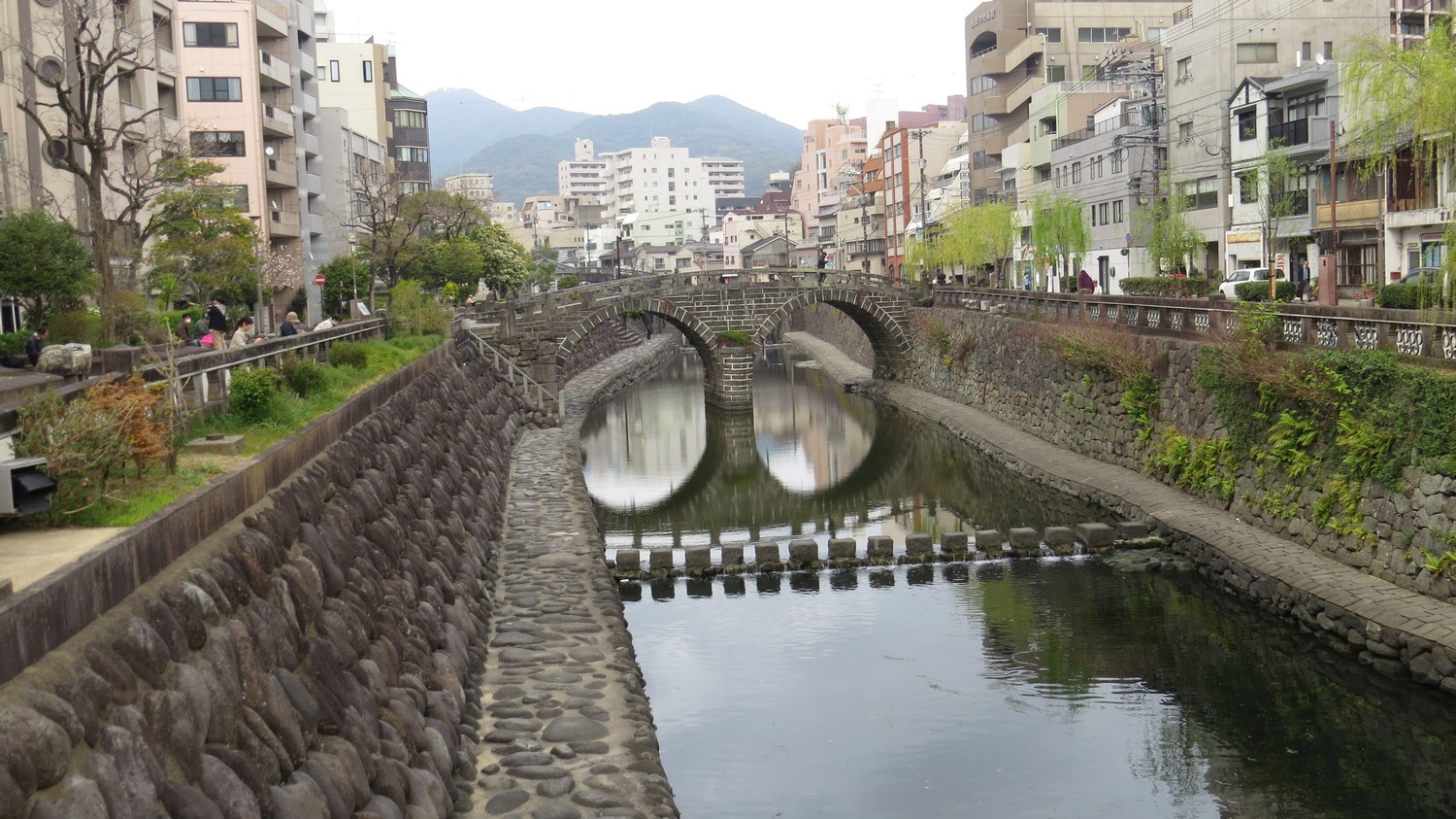 | Megane-bashi, eller glasögonbron på svenska, är Japans äldsta stenbro från 1634. Från början var Megane-bashi var bara ett smeknamn, och bron hade ett annat officiellt namn, men Megane-bashi blev officiellt på 1880-talet. | ||