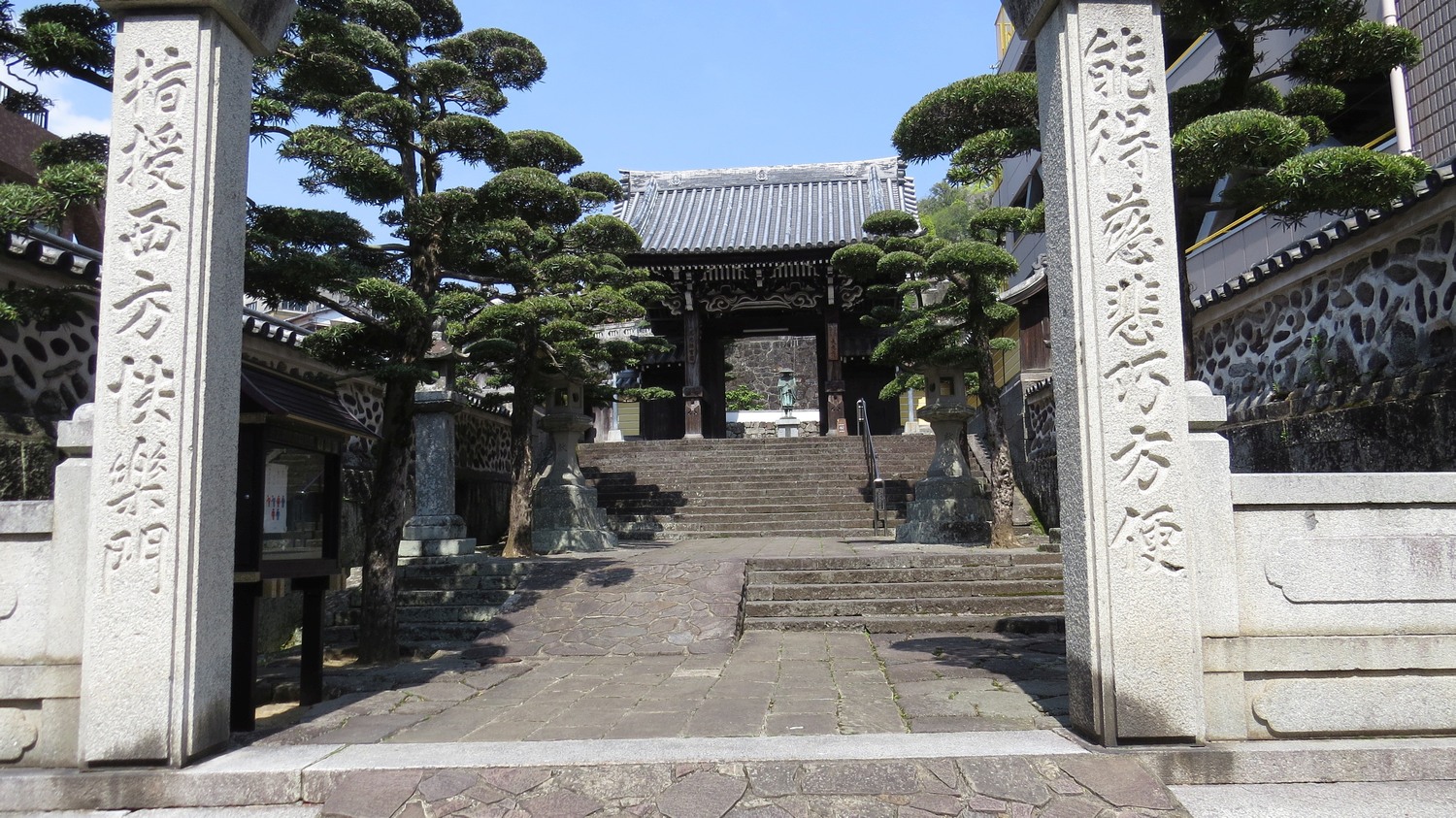 | Sofuku-ji är det viktigaste templet för kinesisk zen-buddism i Nagasaki. Detta är inte huvudingången, utan den här porten leder till en begravningsplats bredvid templet. | ||