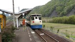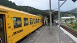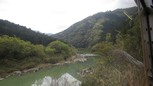 Jag lämnade Uwajima på ett tåg på Yodo-banan som är Shinkansens totala antites. Det är ett lokaltåg som stannar vid varje station. Det är bara en vagn, fort går det inte, men det gör att man får mer tid att njuta av landskapet när det går genom bergen, och järnvägen följer Shimanto-gawas övre lopp till viss del.