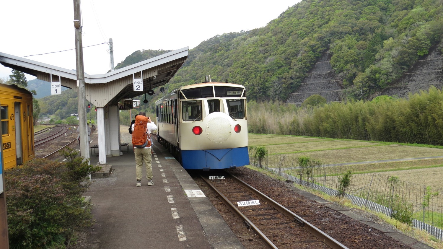 | Vi stannat i Ekawasaki för tågmöte. Det finns tre tåg som trafikerar Yodo-banan, och de är kända som Yodo-bröderna. Här ser vi två av dem, även om fokus är på det mötande tåget. (Vårt tåg kommer på bild senare.) | ||