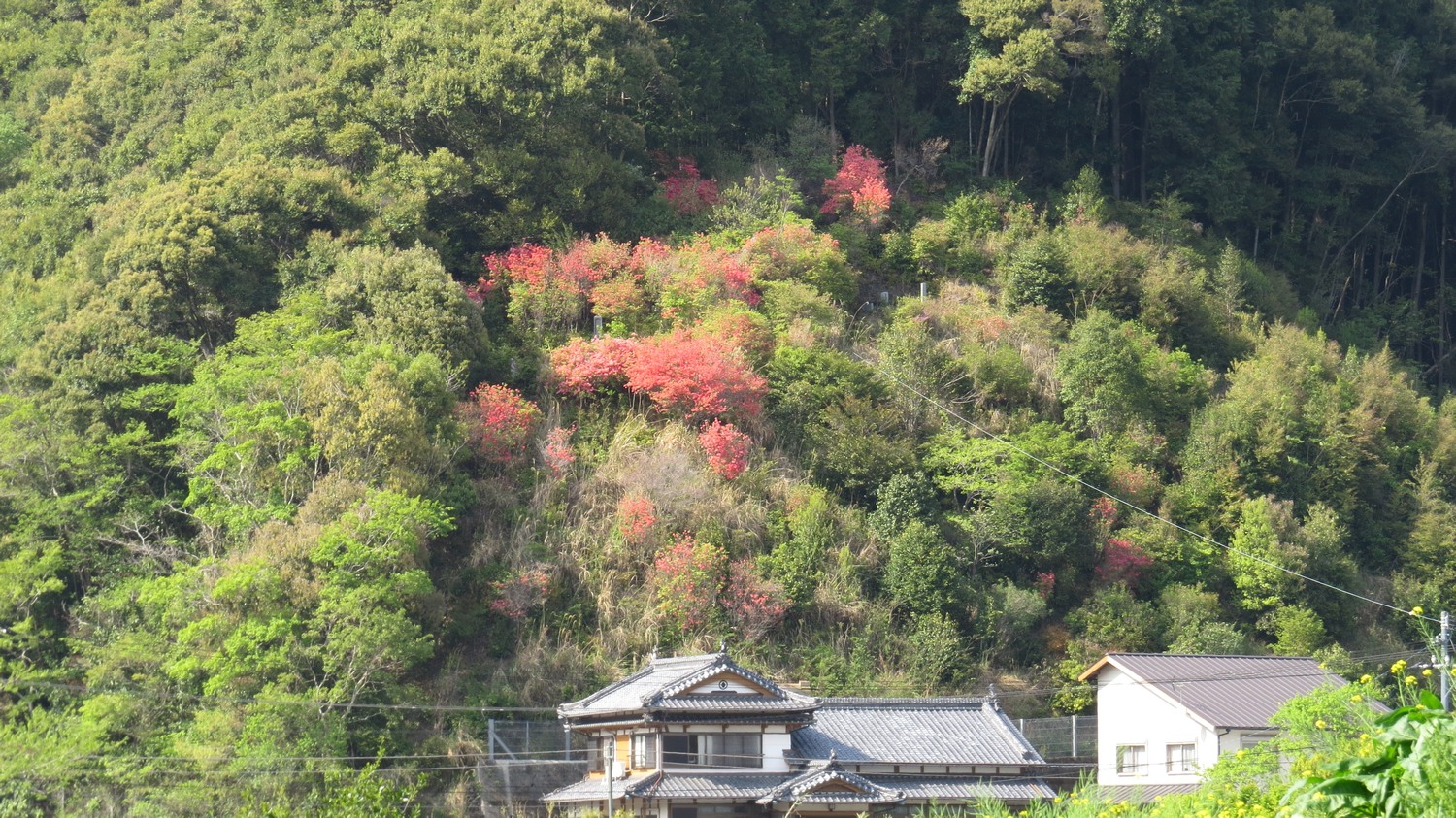 24. Röda blommor ovanför ett hus