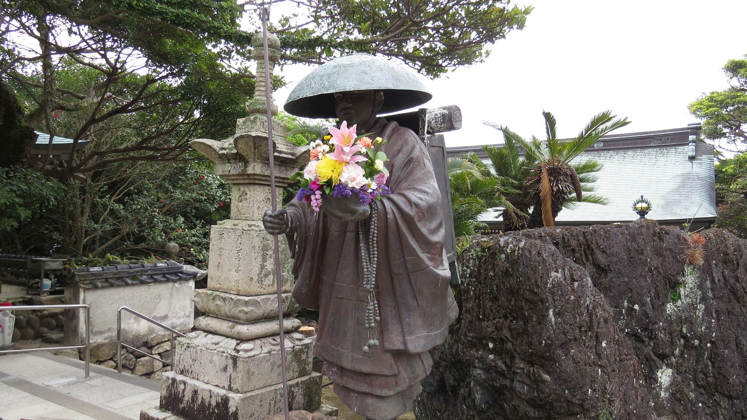 Lustig nog så kom det en kvinna – som uppenbarligen arbetade på templet – och tog bort blommorna.