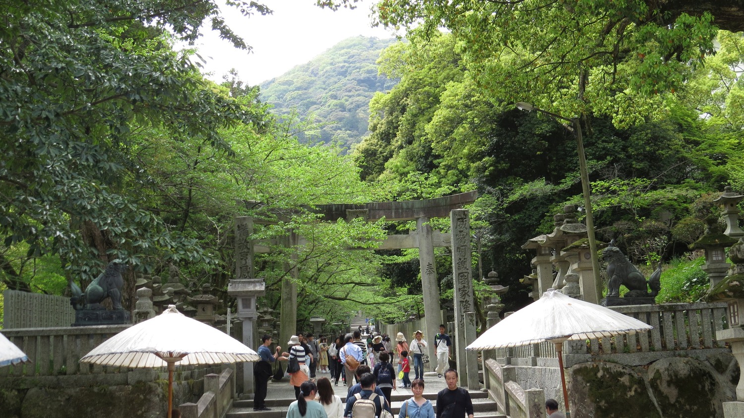De första torii-bågarna som markerar ingången till det heliga.