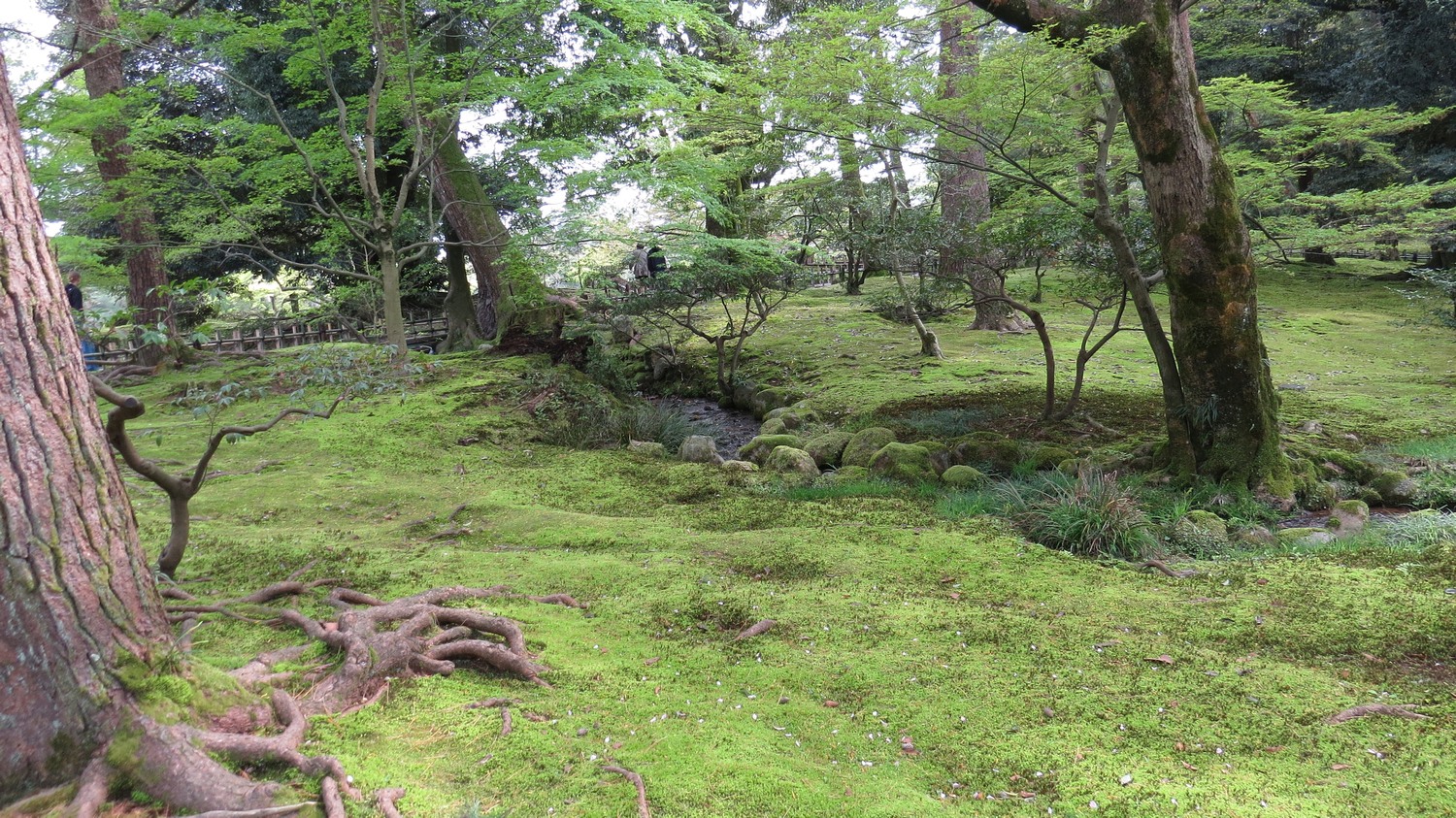 | Jämfört med andra parker, t ex Ritsurin-koen, har Kenroku-en en annan karaktär. Det finns inte så många öppna ytor, utan grunden för parken är mer som en skog. | ||
