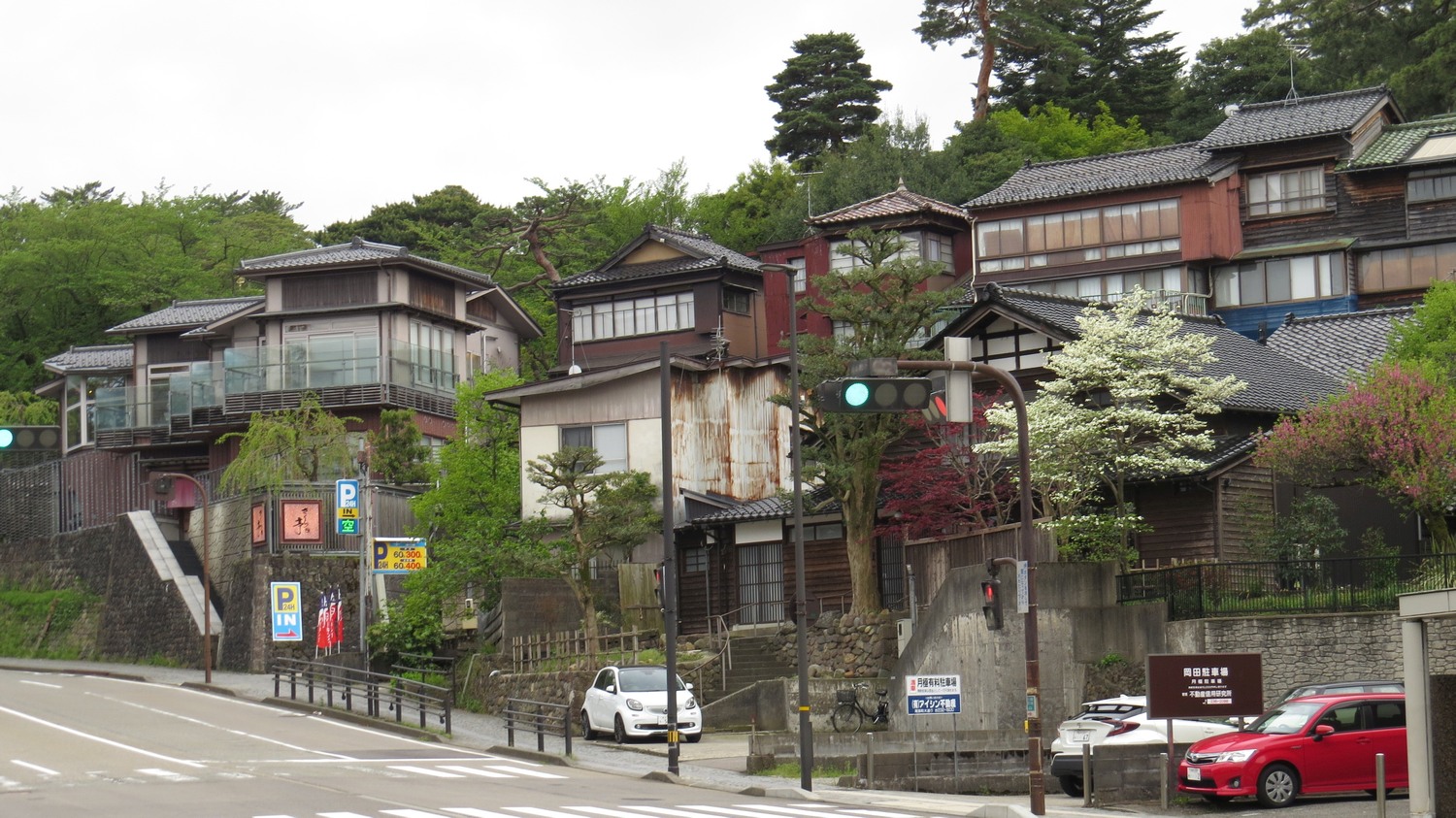 Dessa hus är på sluttningen till kullen där Kenroku-en ligger.