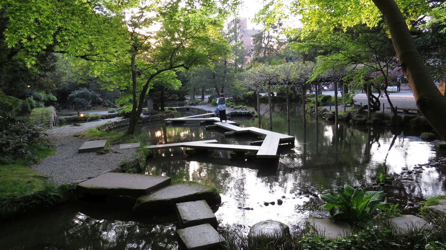 | Mittemot slottsparken finns shintotemplet Oyama, och till templet hör en trevlig park. (Jag nämnde att de har många parker i Kanazawa, eller hur?) | ||
