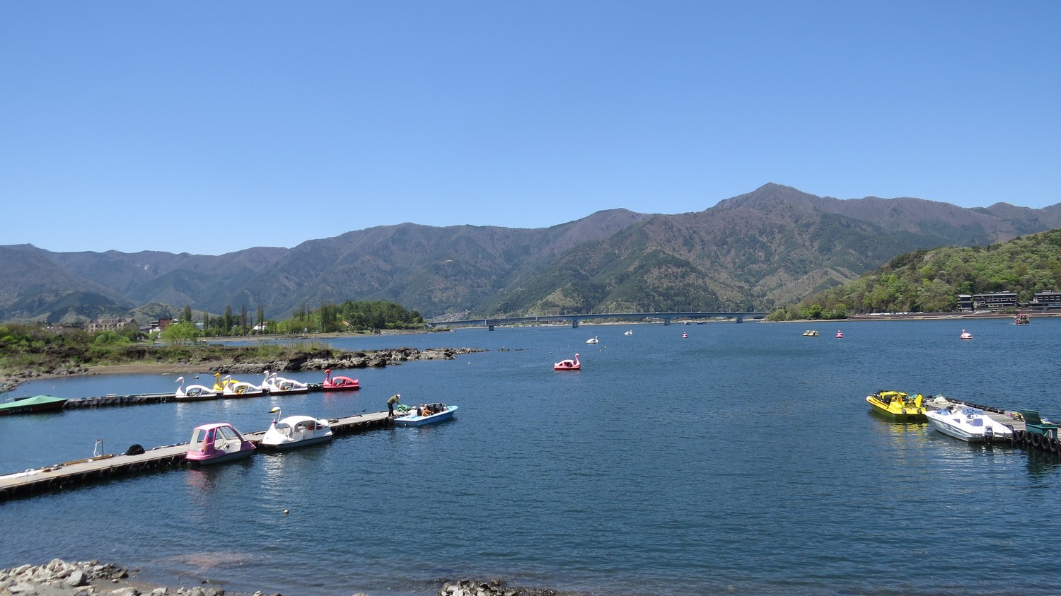 Sjön Kawaguchi-ko ligger vackert bland bergen. Det är ganska så turistorienterat med alla småbåtar som man kan hyra.