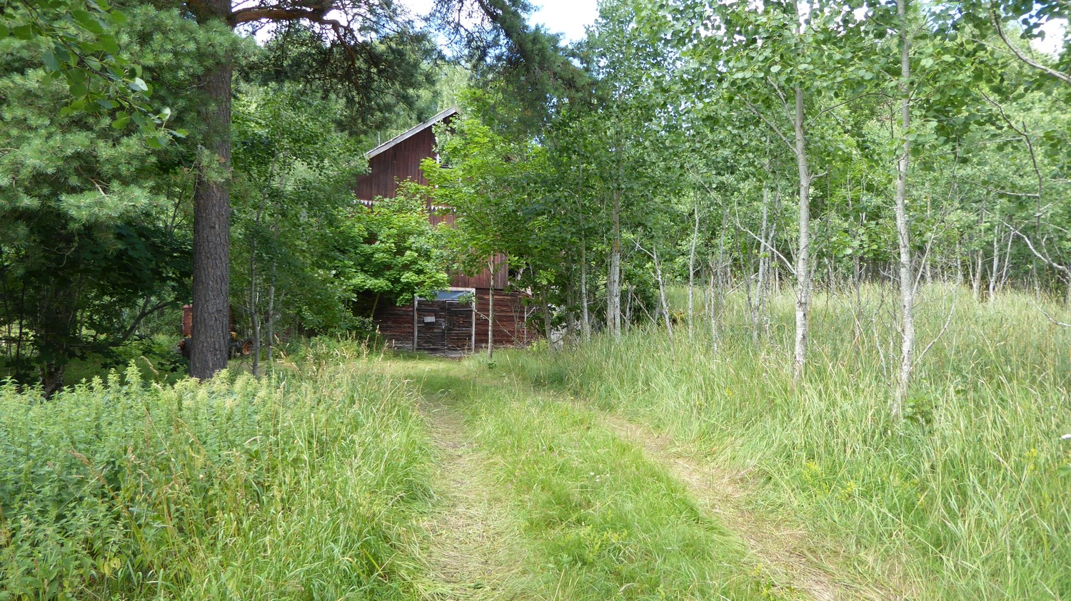 Jag vek av på en ännu mindre väg och kom till denna övergivna lada för att sedan fortsätta på en annan väg på andra sidan av ladan.