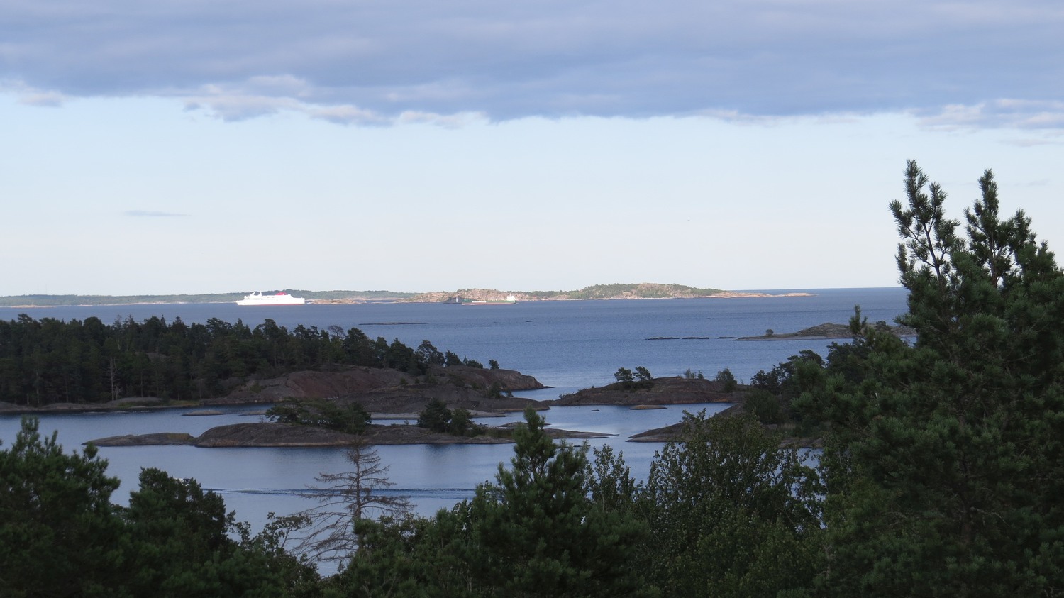 | Söder om Nynäshamn finns det skog med strövområde, med flera val för att bada och sola. Bergholmen är den sydligaste utposten, och från toppen av halvön har man denna utsikt. | ||||