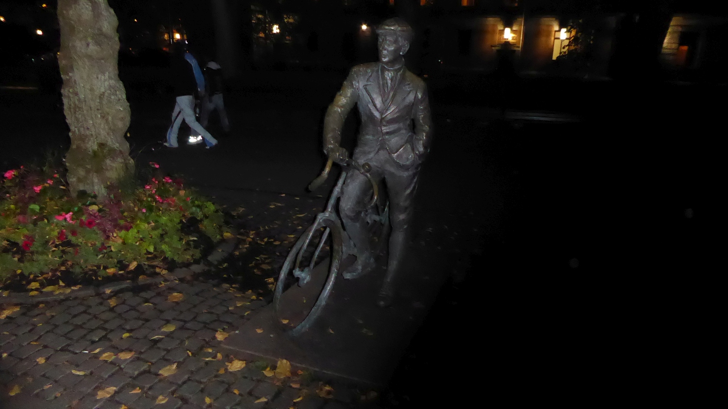 | På väg hem från middagen, noterade jag denna staty i parken längs Karl Johan. Med hjälp av Google Maps och Wikipedia, så ser jag att den föreställer Gunnar Sønsteby som var en motståndsman under andra världskriget. | ||||