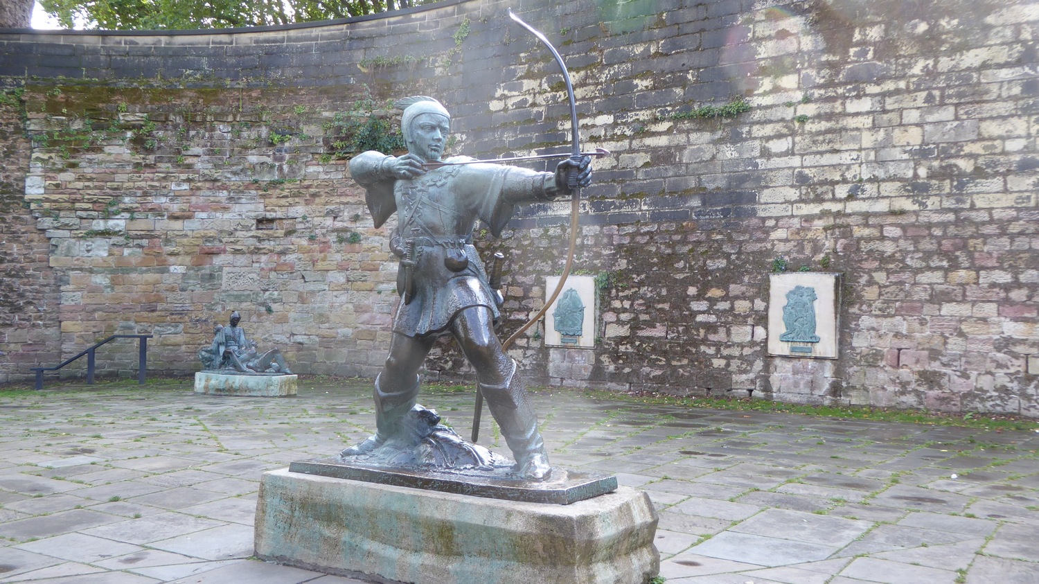 Det stora affischnamnet i Nottingham är förstås Robin Hood, här som staty utanför slottet i Nottingham.