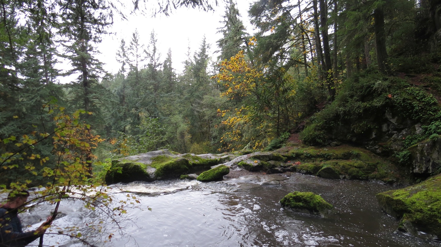 | Det första fallet vi kom ner till vad det övre, som var det minst intressanta. Från det fallet följde vi flodkanten tills vi kom till mellanfallets ovansida. Där var vi tvungna att ta en stig upp mot huvudstigen genom skogen. | ||||